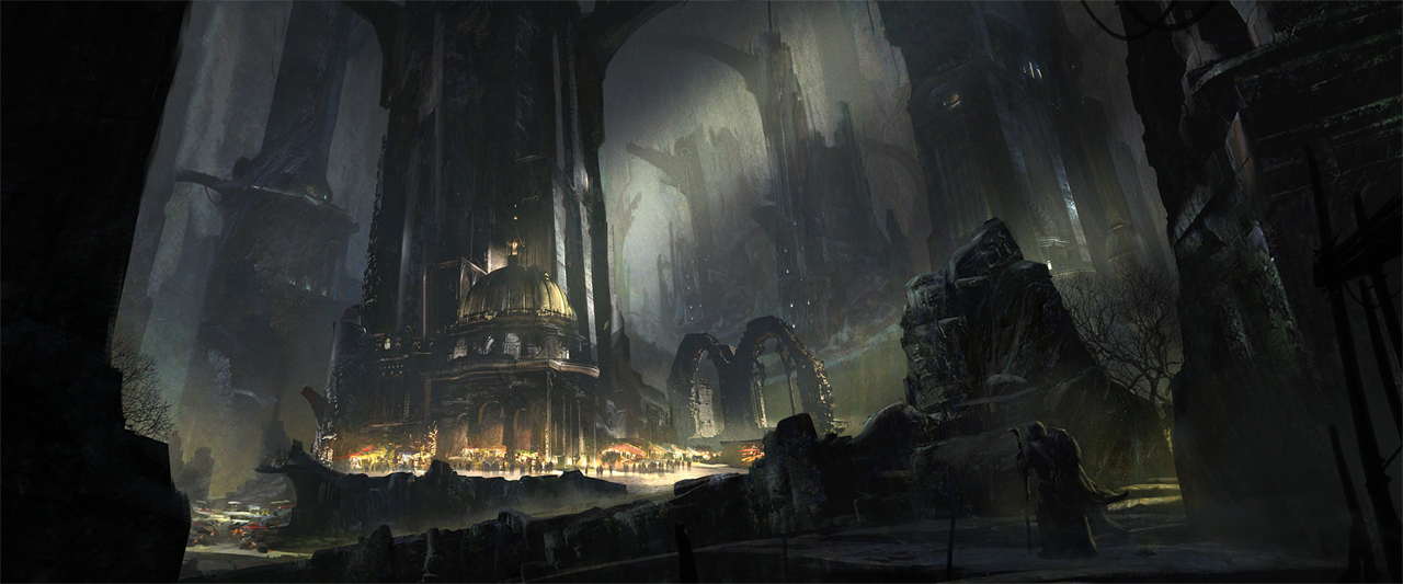 -Grand marché aussi appelé "Maul inférieur" : une grande allée bordée de multiples boutiques spécialisées, vendant quantité de choses, armes, armures, bijoux, mobilier, œuvre d'art, etc.